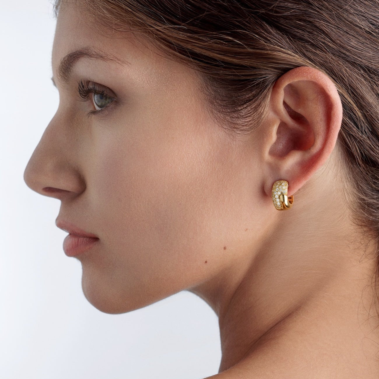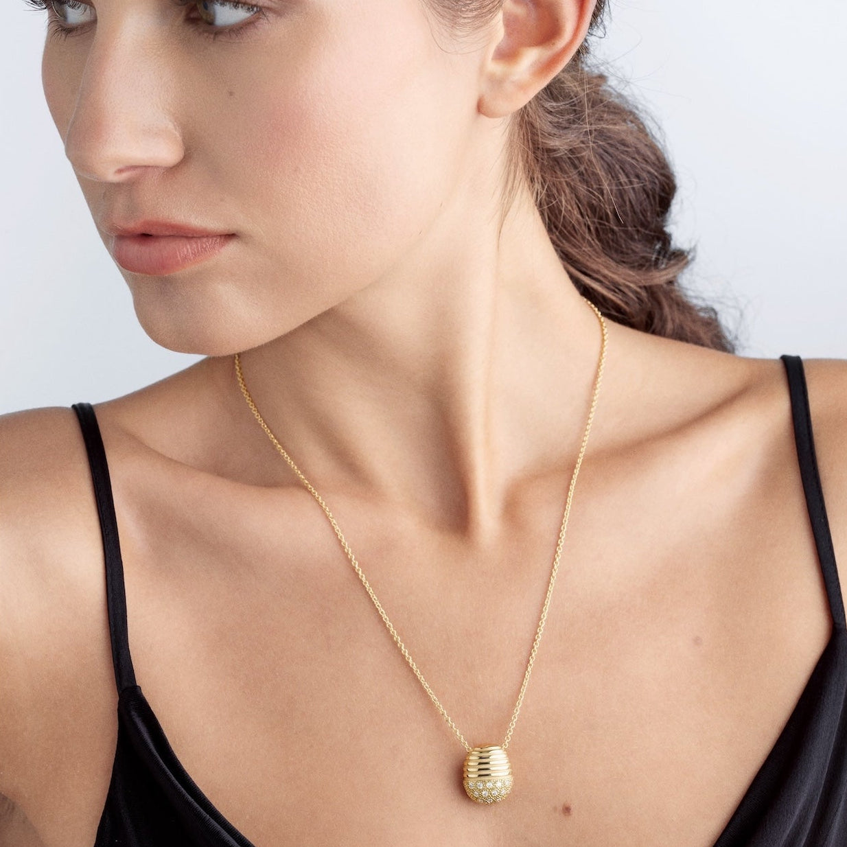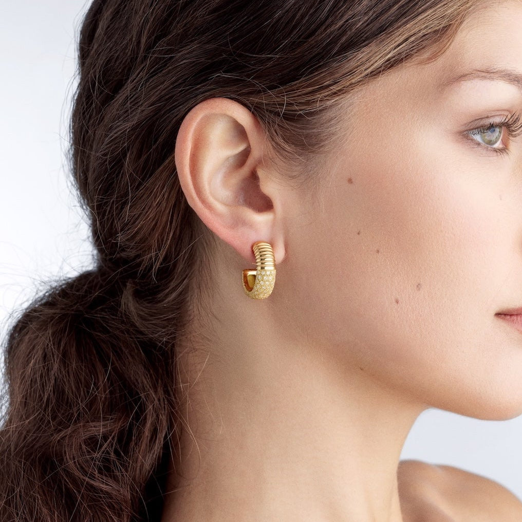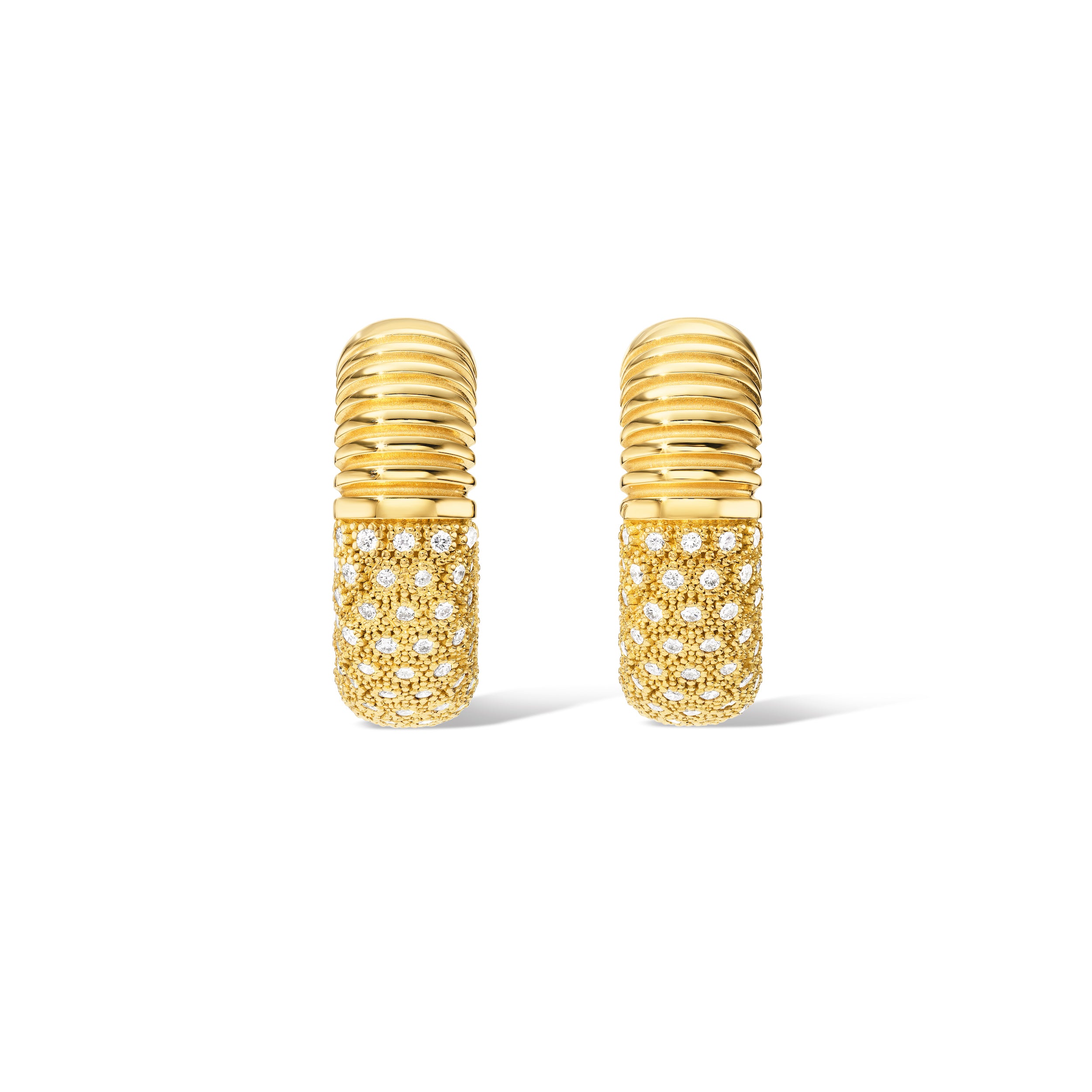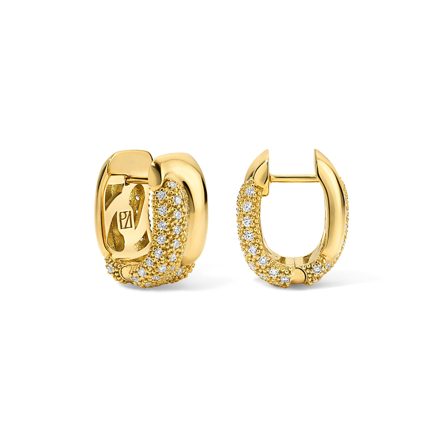 With her unique pavé design, Pamela achieves a new level of luxury: continuous ornamentation visible from every perspective. Diamonds nestle among delicate 18K gold beads, forming an intricate pattern that reveals her mastery of detail and form. Each of Pamela’s pavé pieces meets her exacting standards for superior quality and feel, both substantial and enduring.