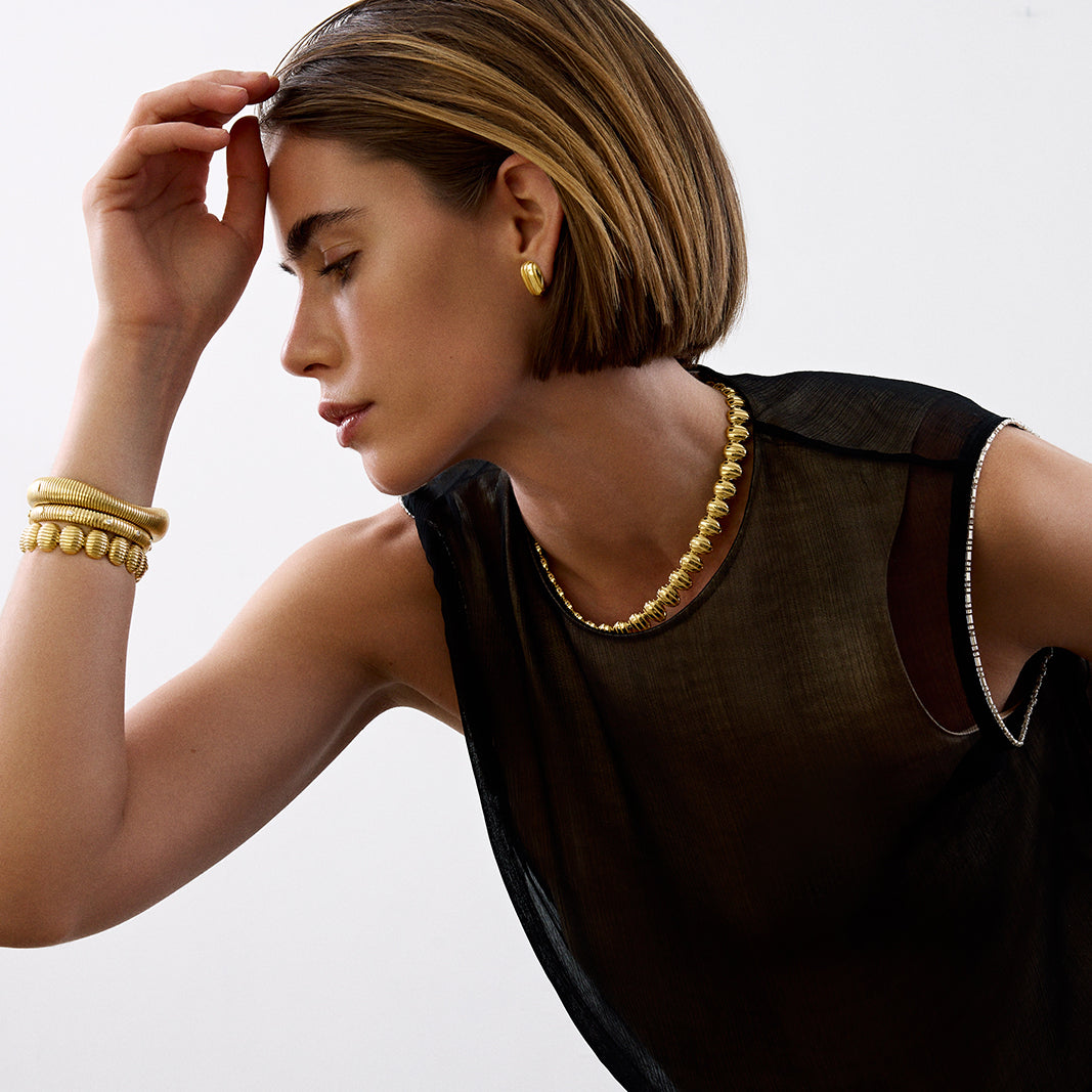For Pamela, the process of designing jewelry begins with a clear intention—to sculpt pieces of substance and lasting presence. Each style is crafted to be tangible and enduring, shaped by an appreciation for weight, and an eye that transcends fleeting trends or industry demands.