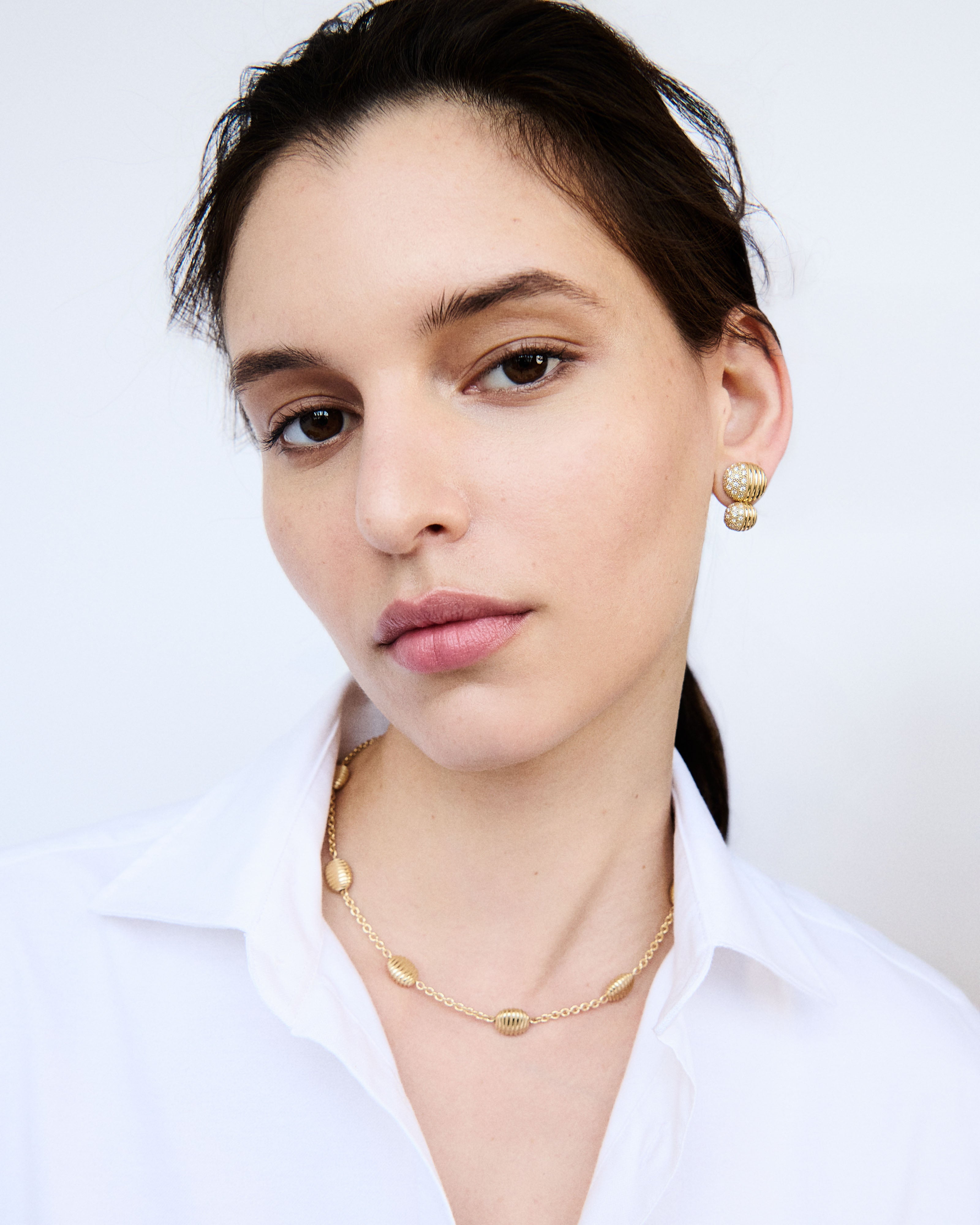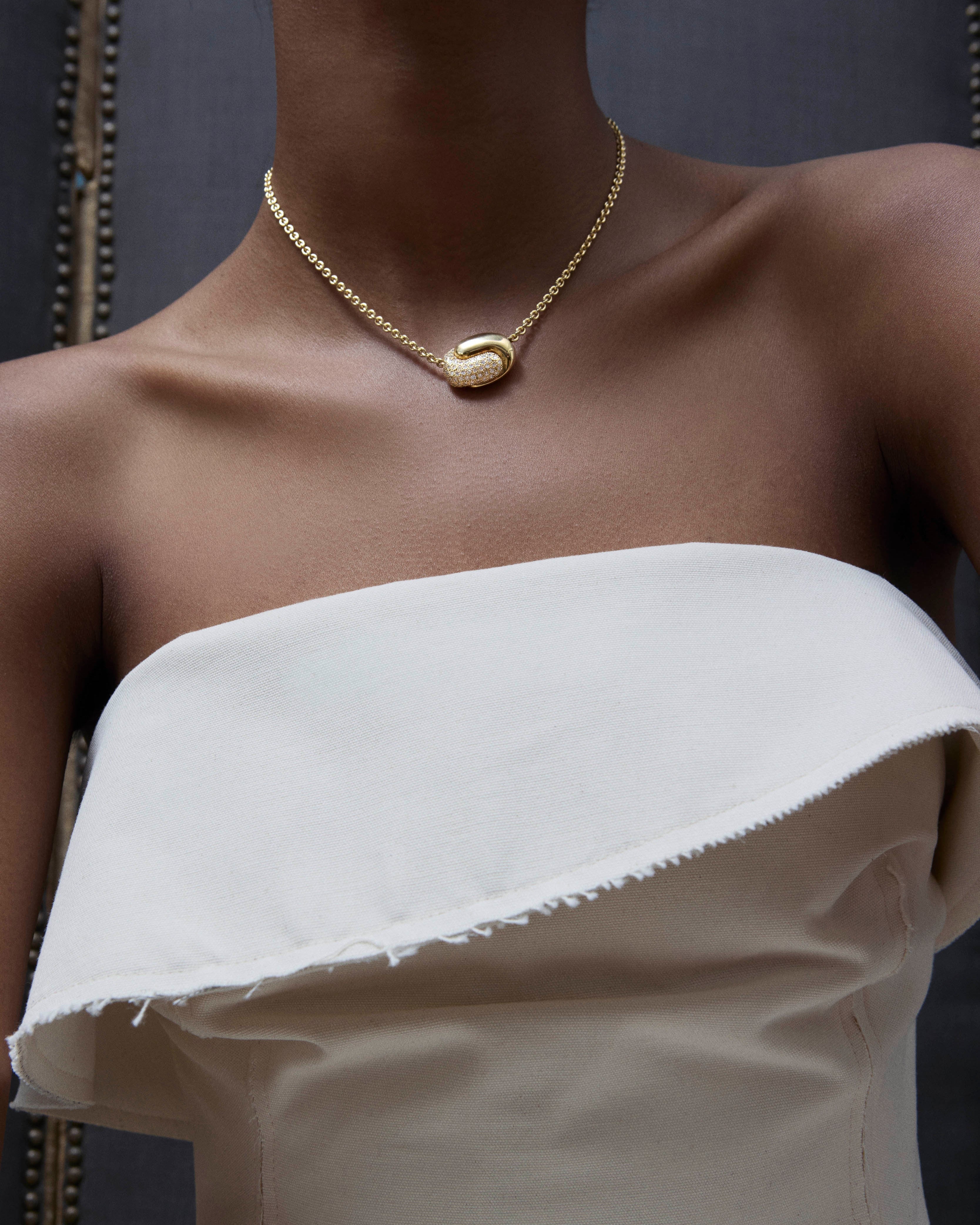 Thoughtfully cast and finished in 18 karat gold, Pamela’s forever earrings and necklaces will be loved now and cherished for generations.