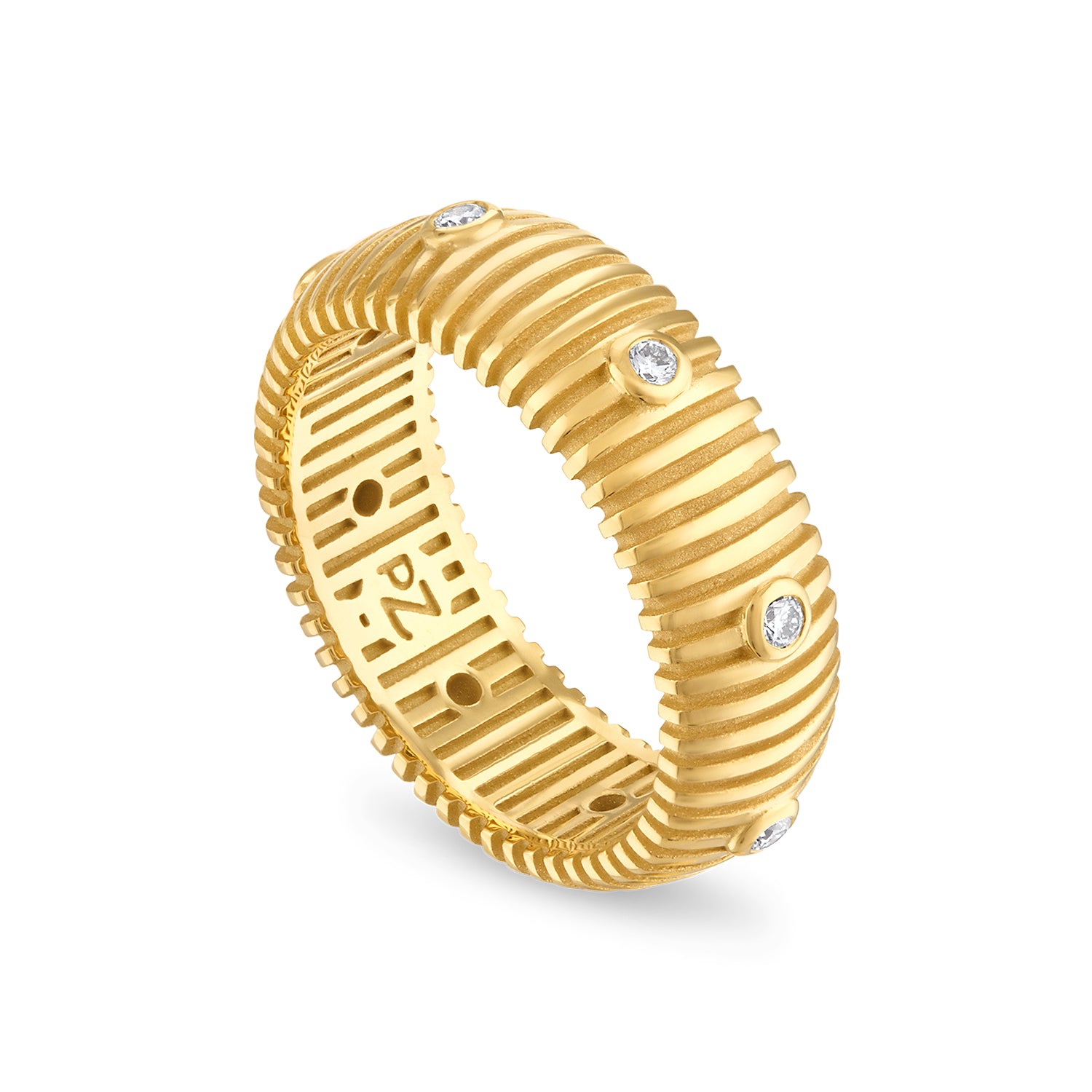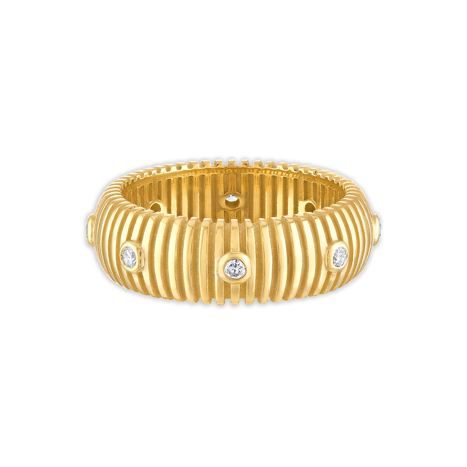 Textural bands and hoops set with bright diamonds. This is Clio. Classic in nature but with a modern twist, these new favorites are designed to be worn daily.