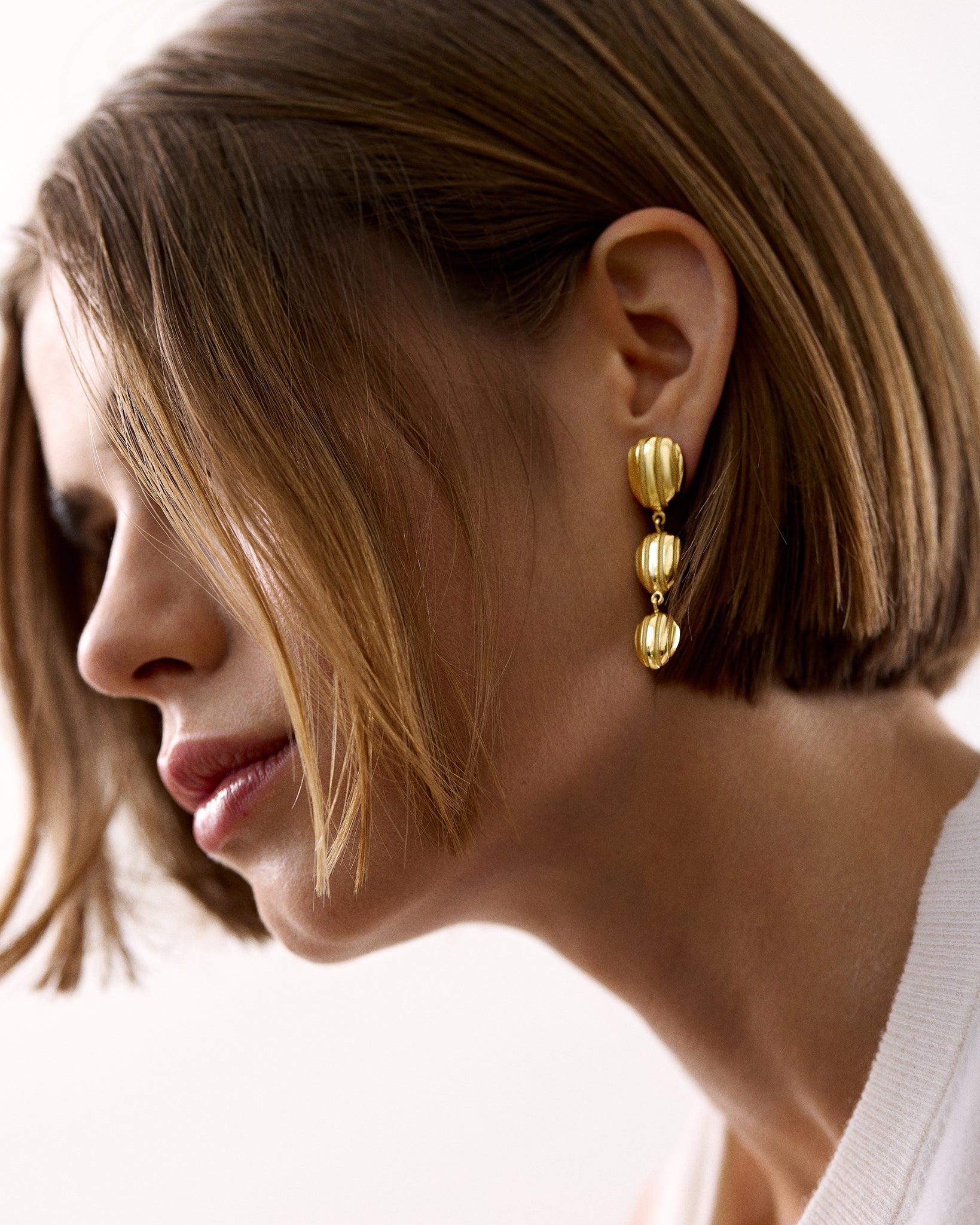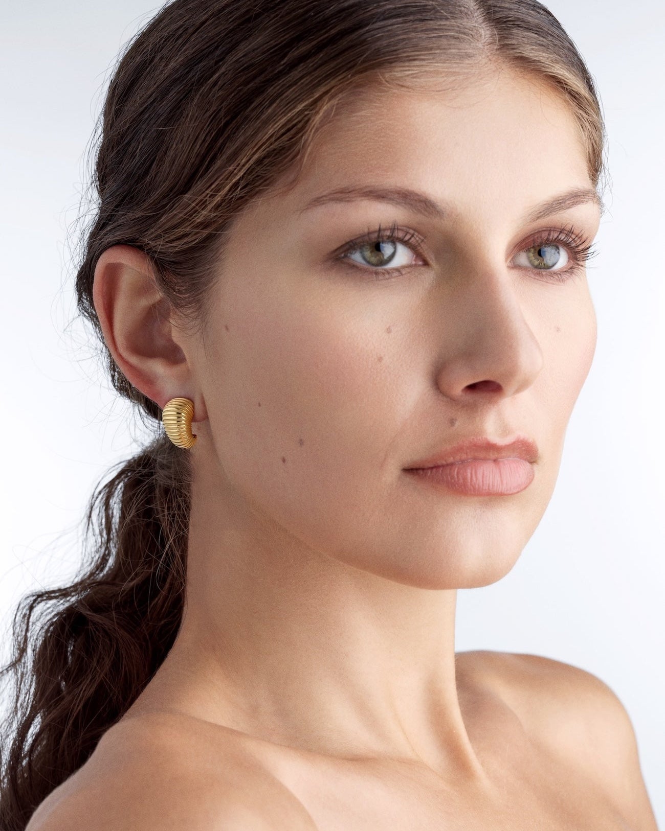 Thoughtfully cast and finished in 18 karat gold, Pamela’s forever earrings and necklaces will be loved now and cherished for generations.
