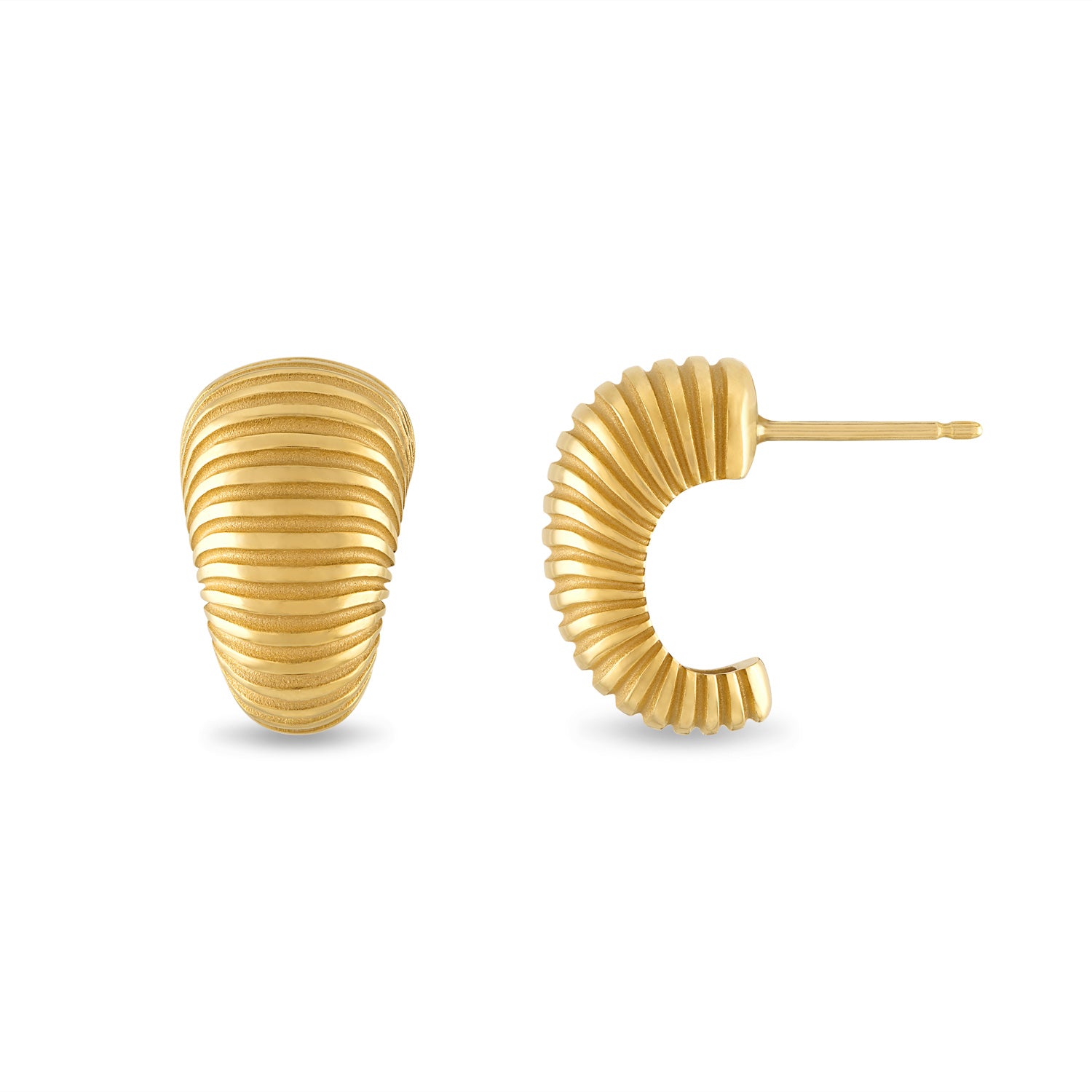 Isla brings form to Pamela’s love of working with texture and shape. A gleaming finish of polished ridges and sandblasted channels evoke both the nobility of ancient worlds and the glamour of the 70s.