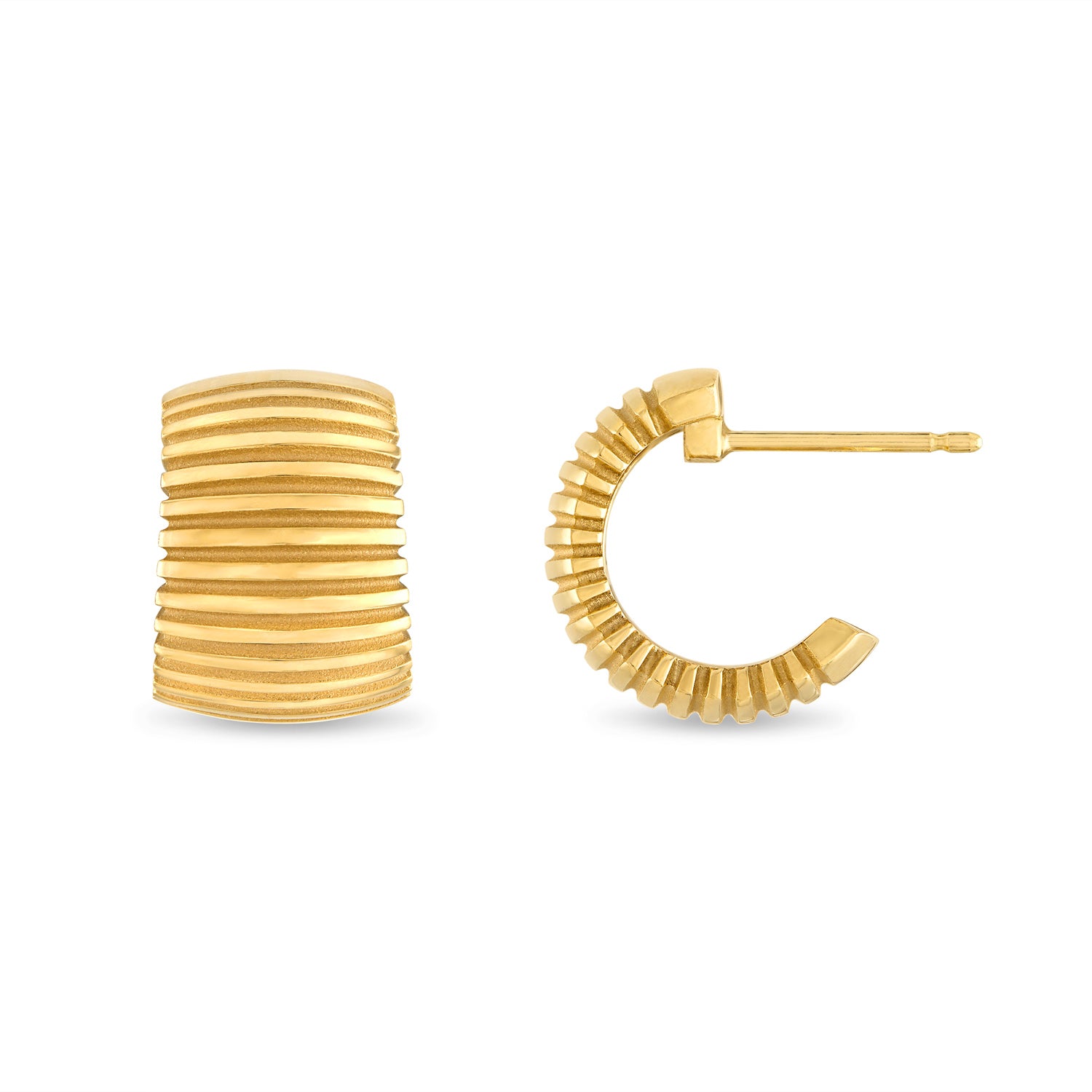 Isla brings form to Pamela’s love of working with texture and shape. A gleaming finish of polished ridges and sandblasted channels evoke both the nobility of ancient worlds and the glamour of the 70s.