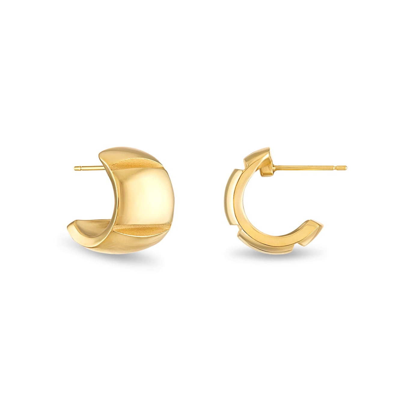 Veda is an exploration of contrast and wholeness. Carefully shaped sandblasted valleys are carved from smooth polished gold, resulting in pieces that are modern and classic, masculine and feminine.