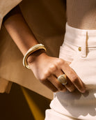 Isla brings form to Pamela’s love of working with texture and shape. A gleaming finish of polished ridges and sandblasted channels evoke both the nobility of ancient worlds and the glamour of the 70s.