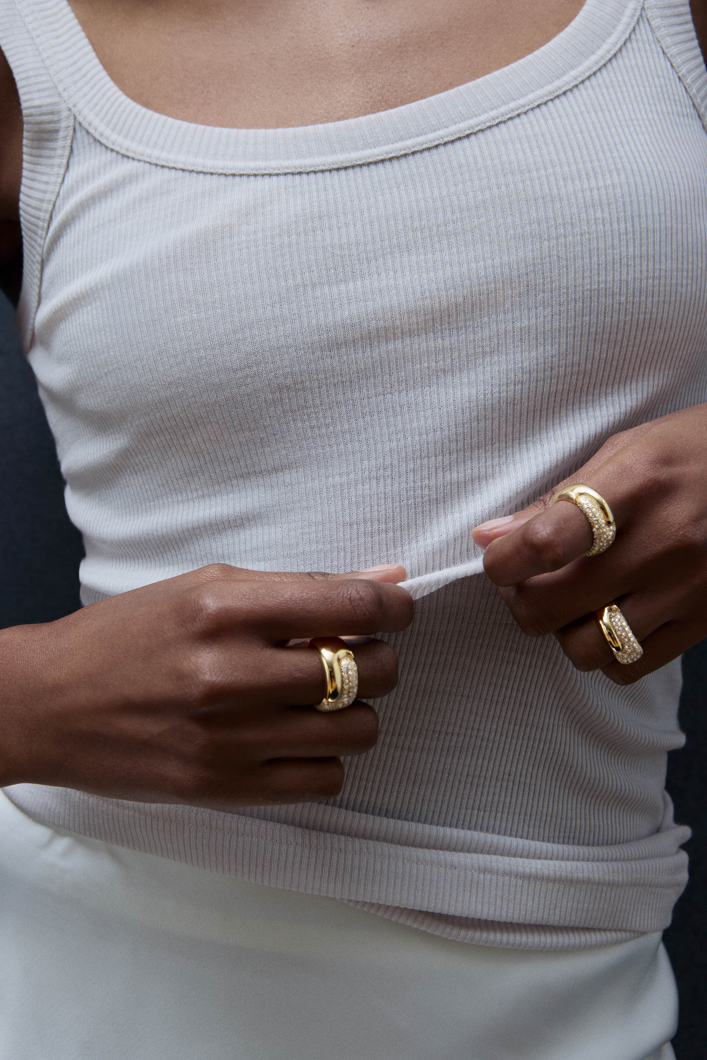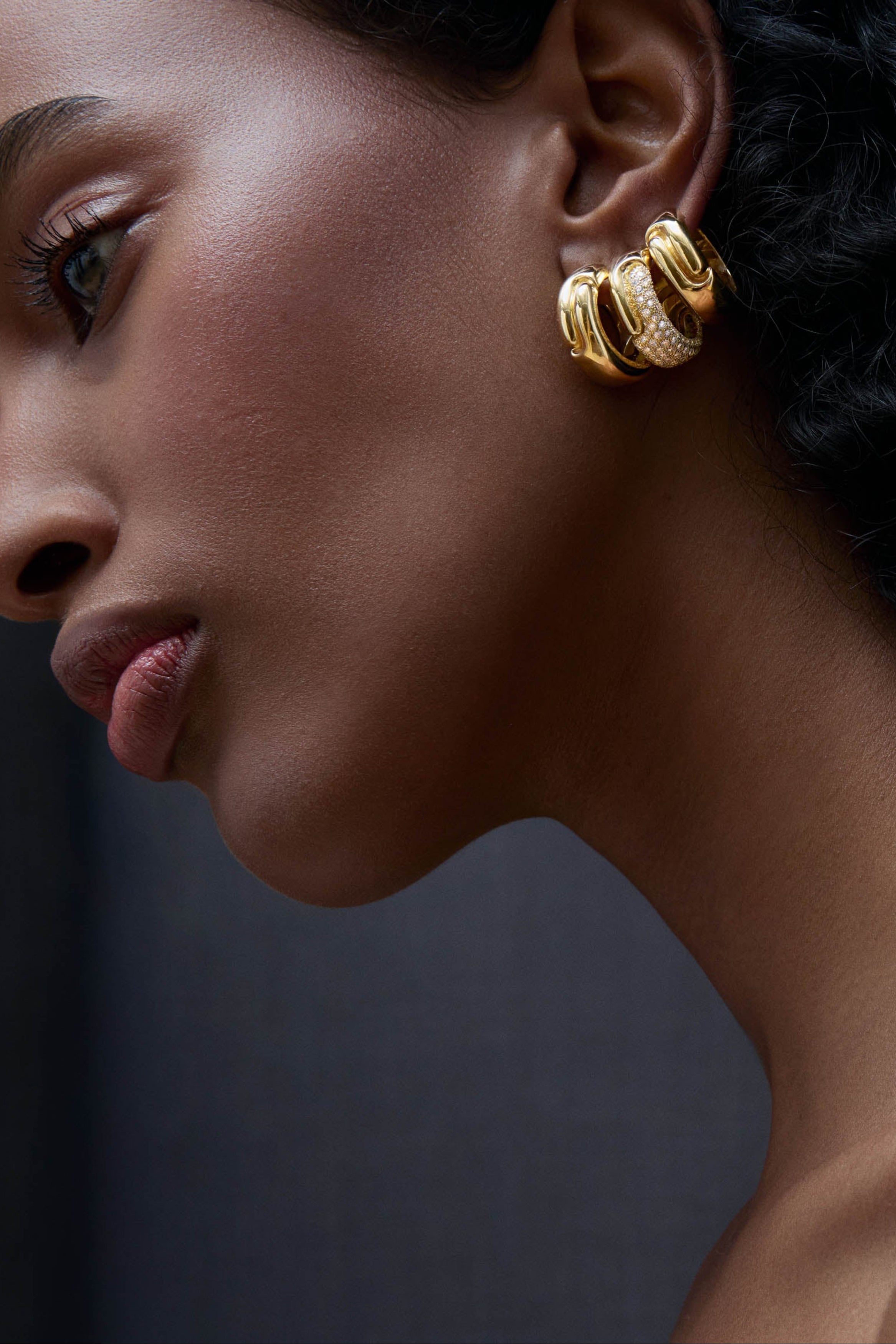The gold-rich designs of the Holos collection embody the Pamela Zamore signature weighted feel.